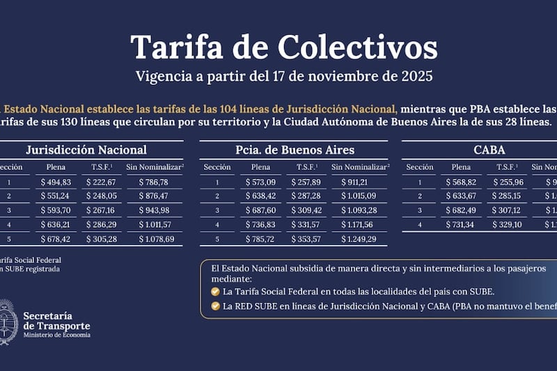 Según indicó la Secretaría de Transporte en un comunicado oficial, con este aumento se busca “mantener la sostenibilidad del sistema de transporte público en el marco de la política de ordenamiento del sector".